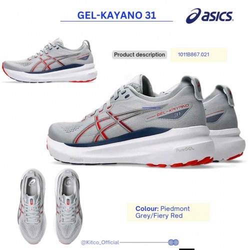 Asicss Gel Kayano 31 Piedmont Grey Fiery Red